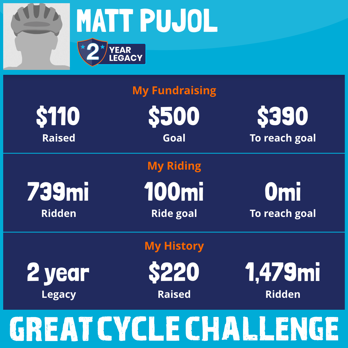 I am riding 100 mi to fight kids' cancer and save little lives. Please sponsor me to support my challenge!