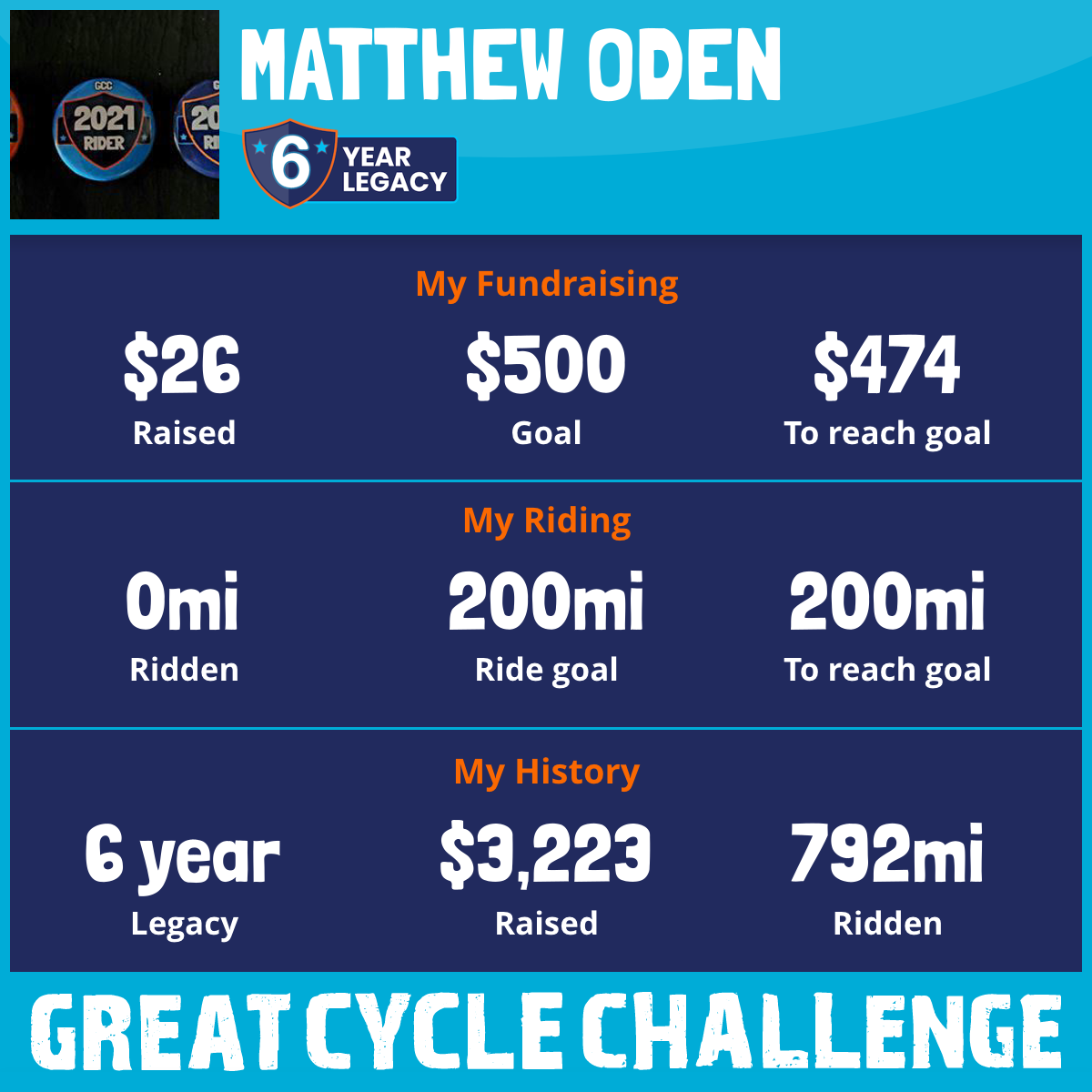 132 mi Ridden$334 Raised2021