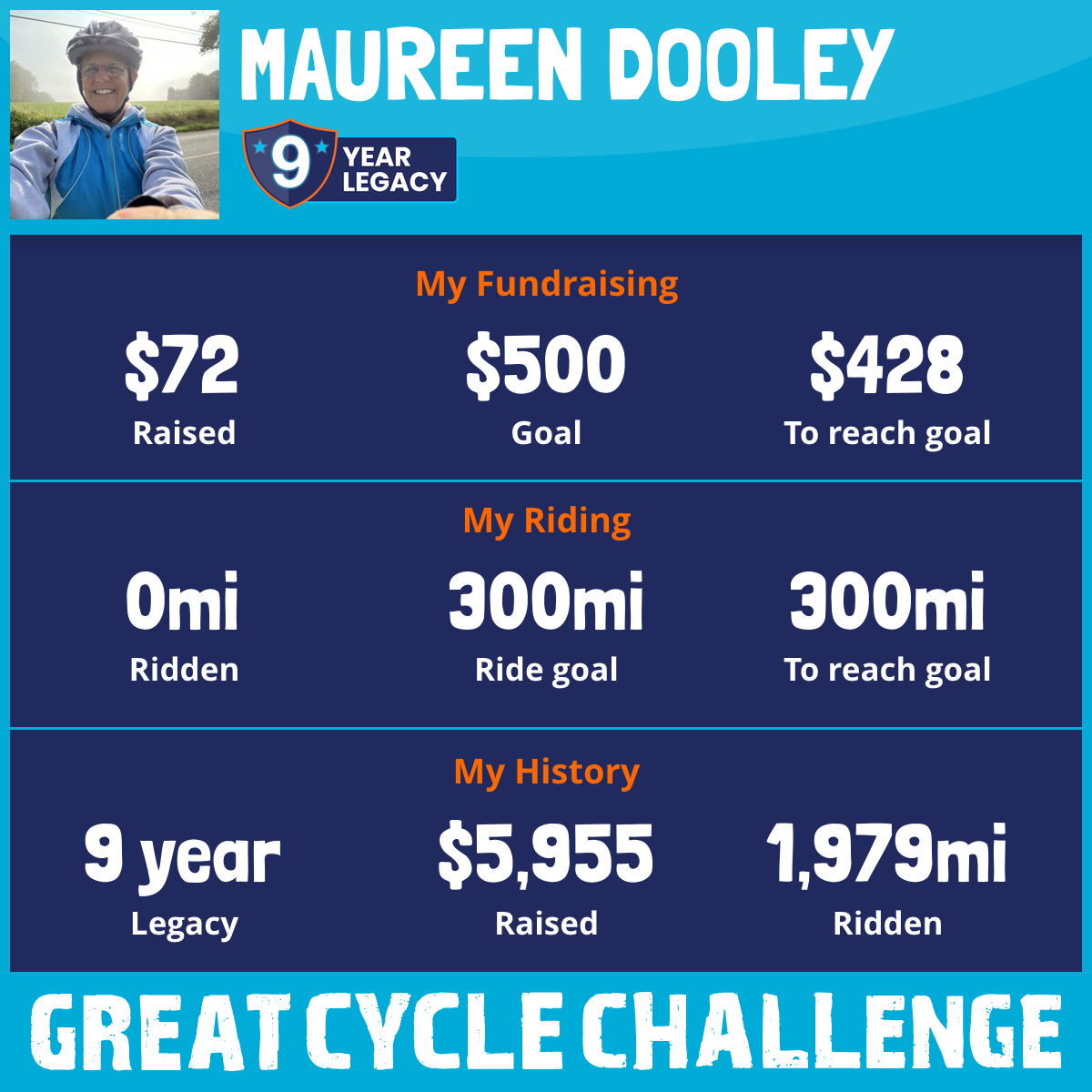 300 mi Ridden$1,064 Raised2023