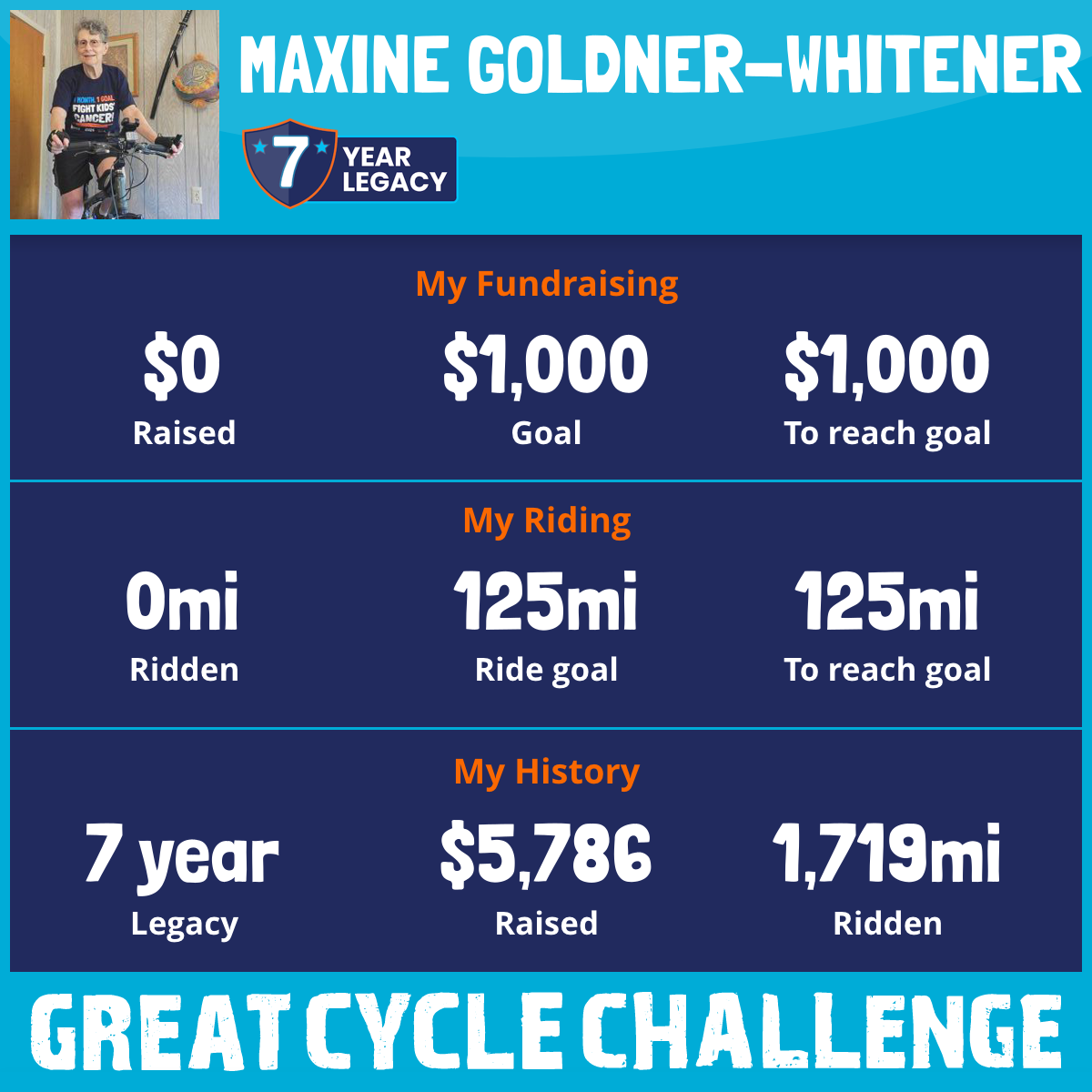 I am riding 125 mi for Shirley. Please sponsor me and support my challenge to fight kids' cancer and save little lives.