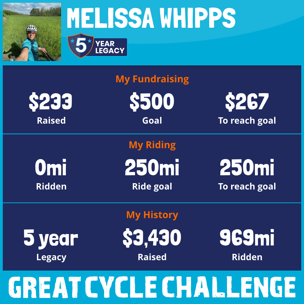 I don't do many fundraisers, but this one in very important to me and so I am raising money for the Great Cycle Challenge to fight kids' cancer for the fifth consecutive year.