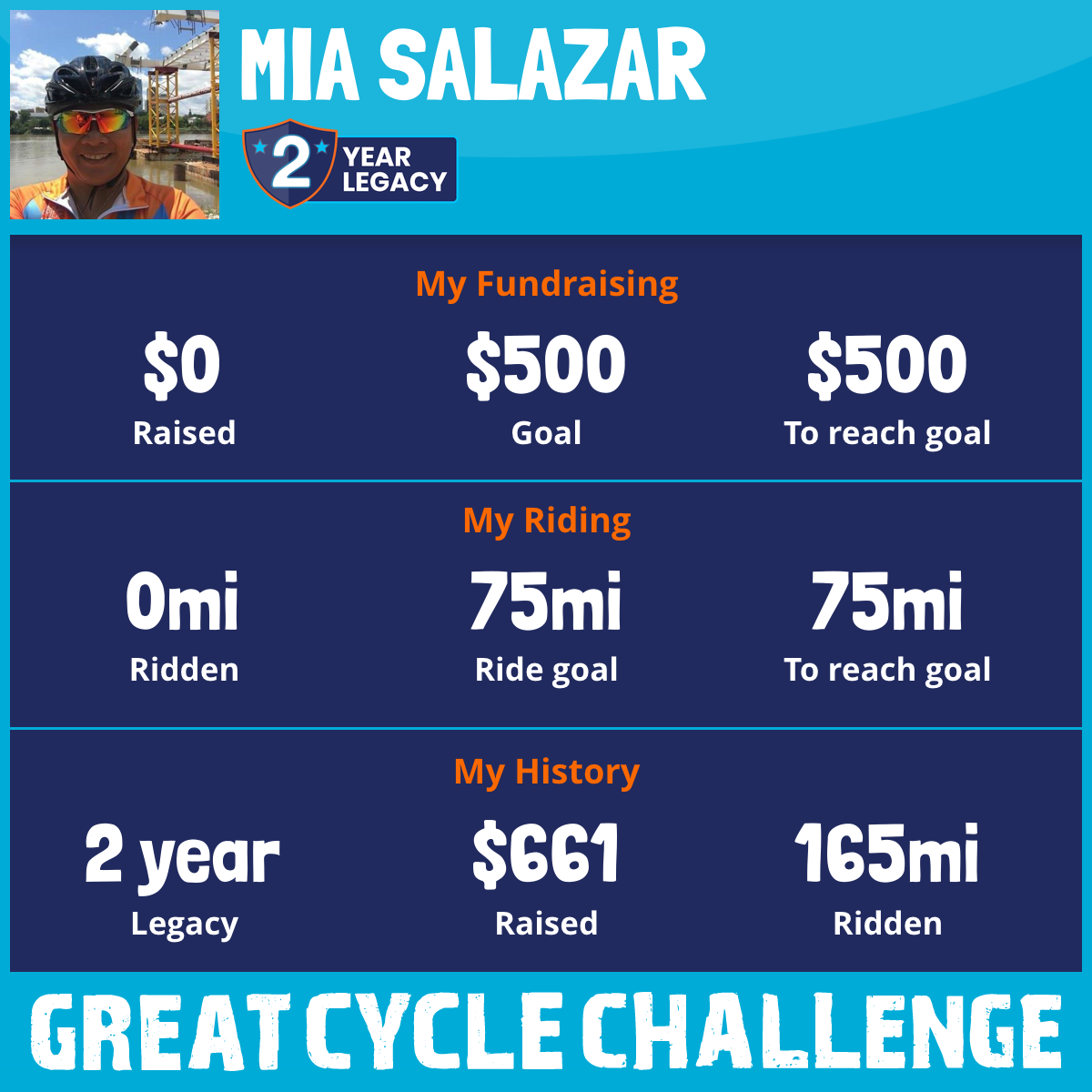 165 mi Ridden$661 Raised2016