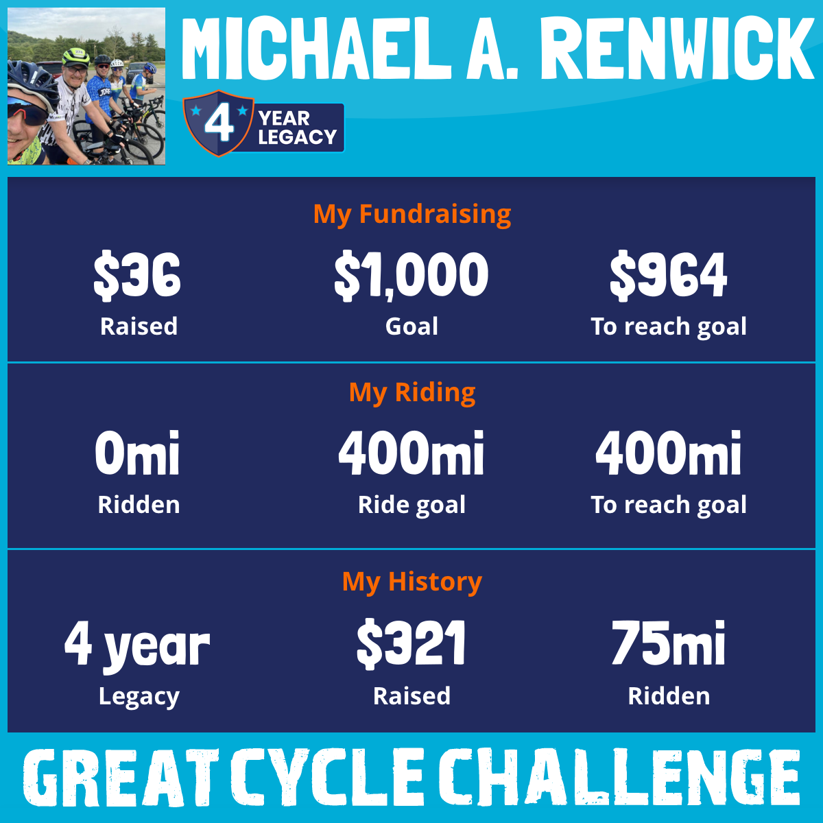 20 mi Ridden$285 Raised2023