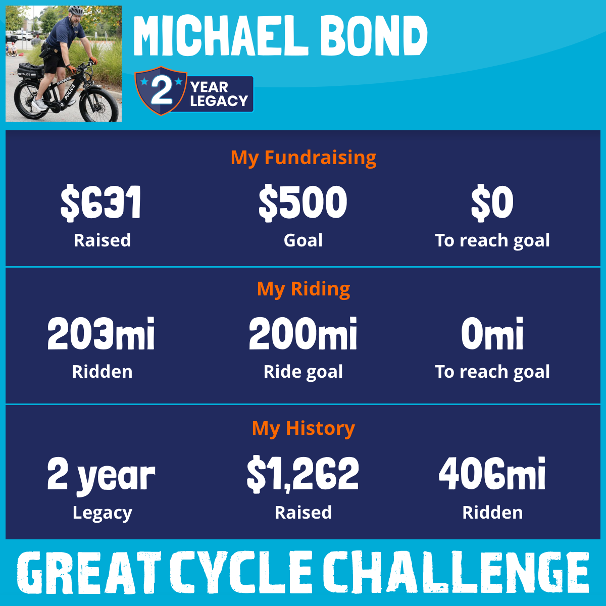 203 mi Ridden$631 Raised2026