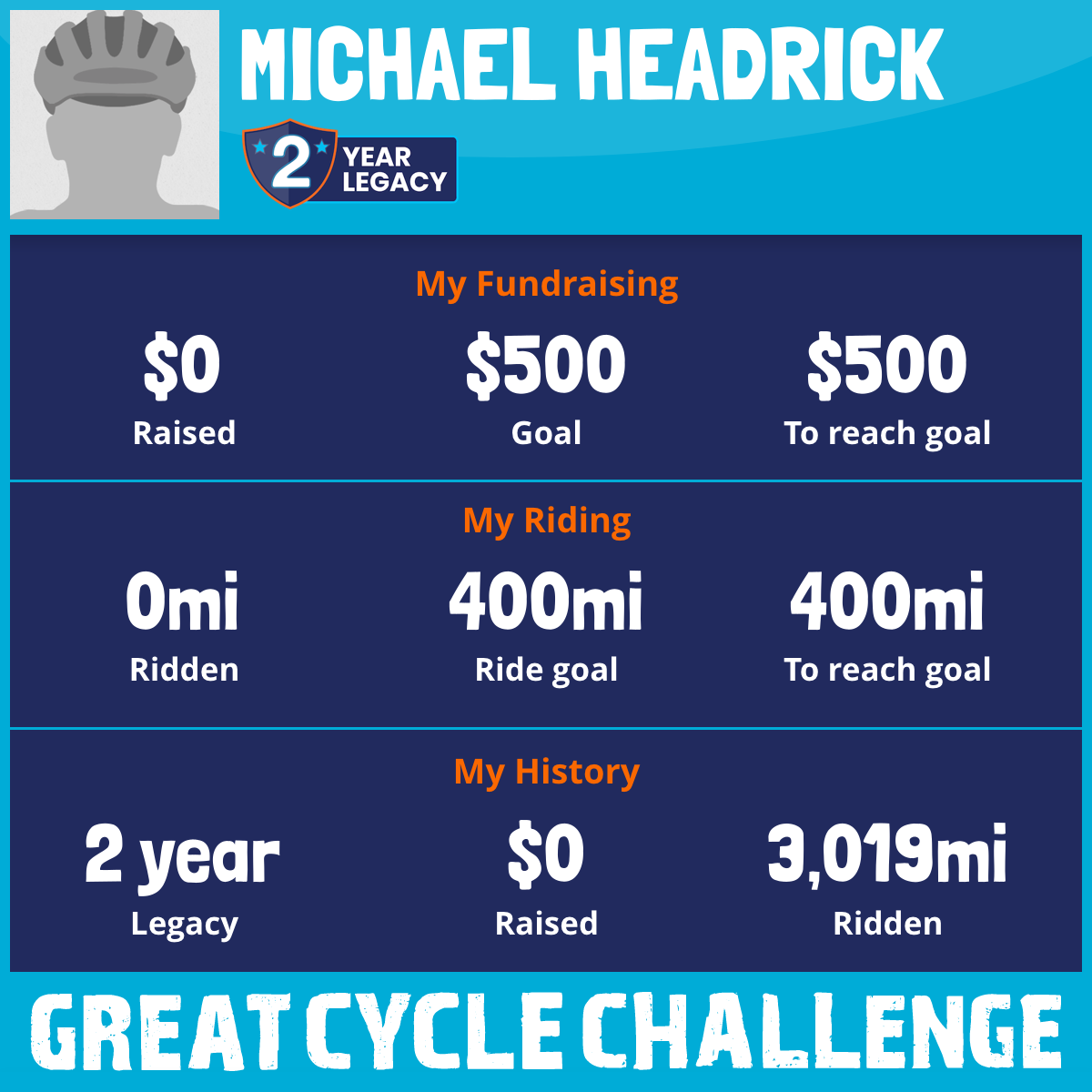 I am riding 400 mi in memory of Keith. Please sponsor me and support my challenge to fight kids' cancer and save little lives.