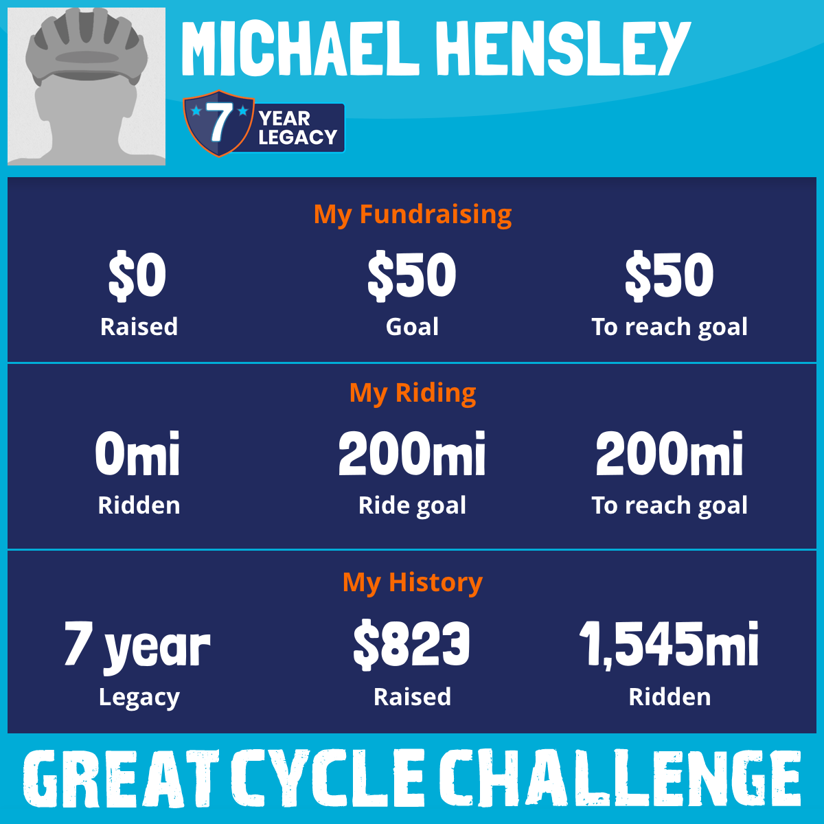 I am riding 200 mi for Marian Hensley. Please sponsor me and support my challenge to fight kids' cancer and save little lives.