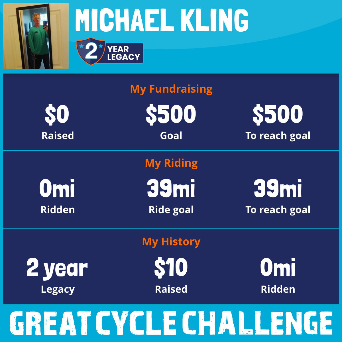 I am riding 39 mi in memory of my dad, Carl Kling. Please sponsor me and support my challenge to fight kids' cancer and save little lives.