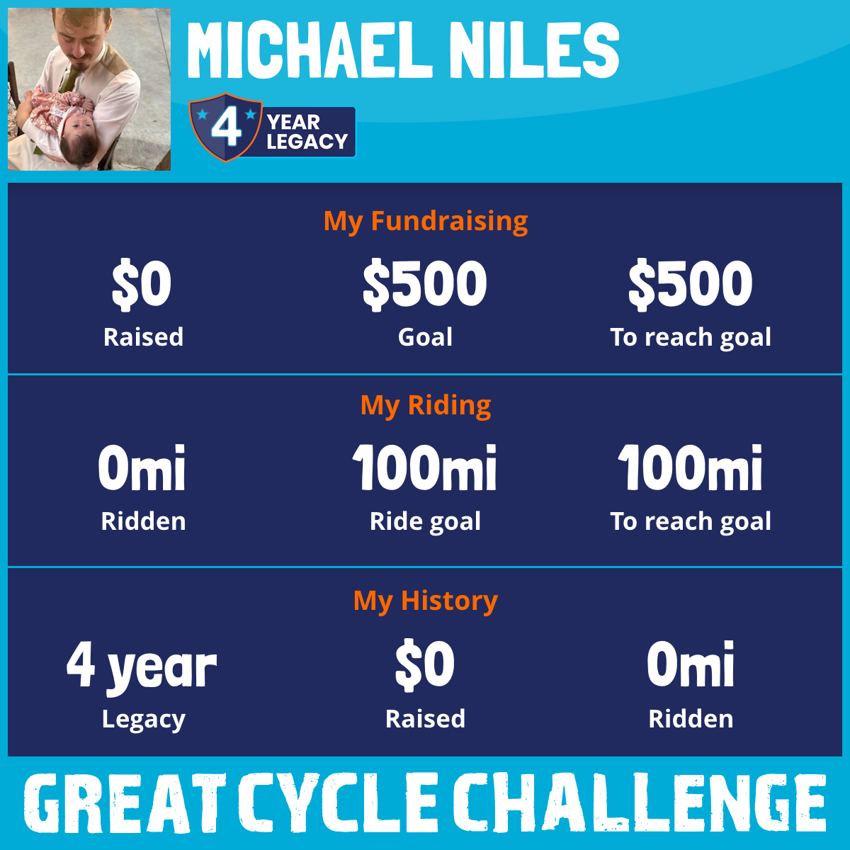 I am riding 100 mi in memory of Jay Bruce. Please sponsor me and support my challenge to fight kids' cancer and save little lives.