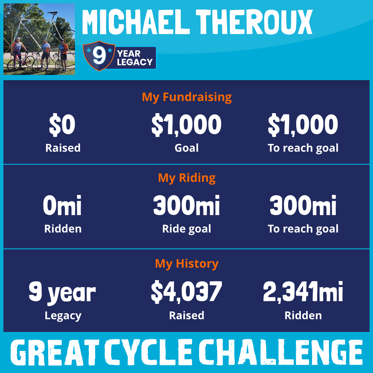 I am riding 300 mi in memory of Everyone Battling. Please sponsor me and support my challenge to fight kids' cancer and save little lives.