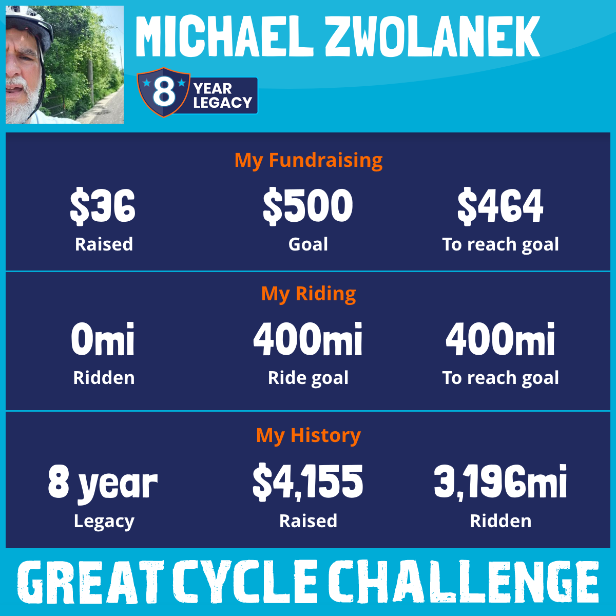 I've raised $36 My goal is $500 Donate Now