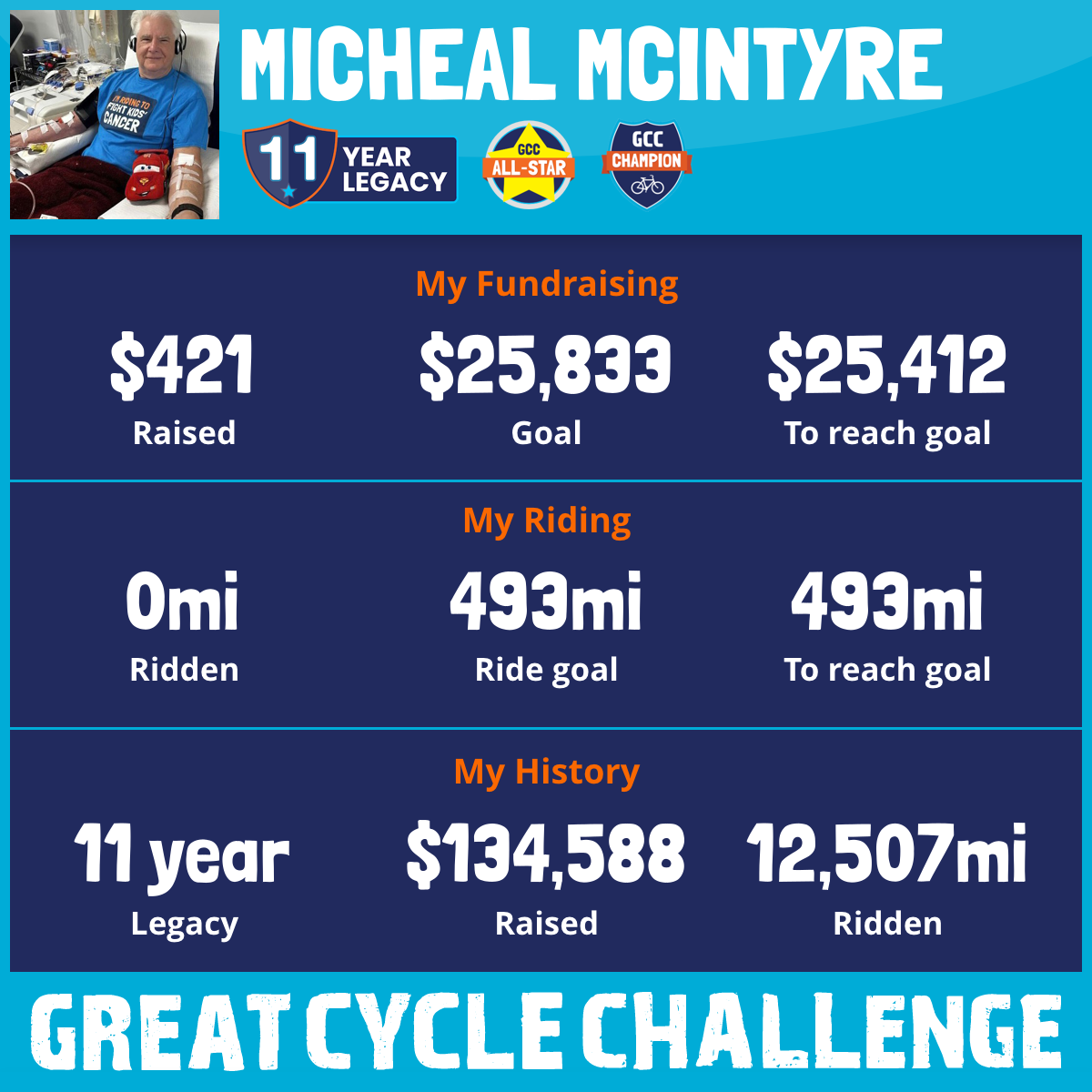 27 Oct 2025For many children with cancer, their treatments are a "crap shoot." Why, because the treatments they are given are with drugs created for adults, not specifically for a child's body. As a result, more than 90% will have health issues later in life. And at worst, they won't survive their treatment. When you play craps, a 7 or 11 on your first role is a winner. That got me thinking about those numbers. This is my 11th year riding in the GCC. So, I have one of the winning numbers. What would represent the 7? Well, I am currently the 8th highest fundraiser this year. With a week left in the fundraising period, I am now aiming to get to 7th. I am close. If you click on the individual leaderboard menu option, you can see the standings. Your donation will support the pediatric cancer research to one day help all kids become winners,