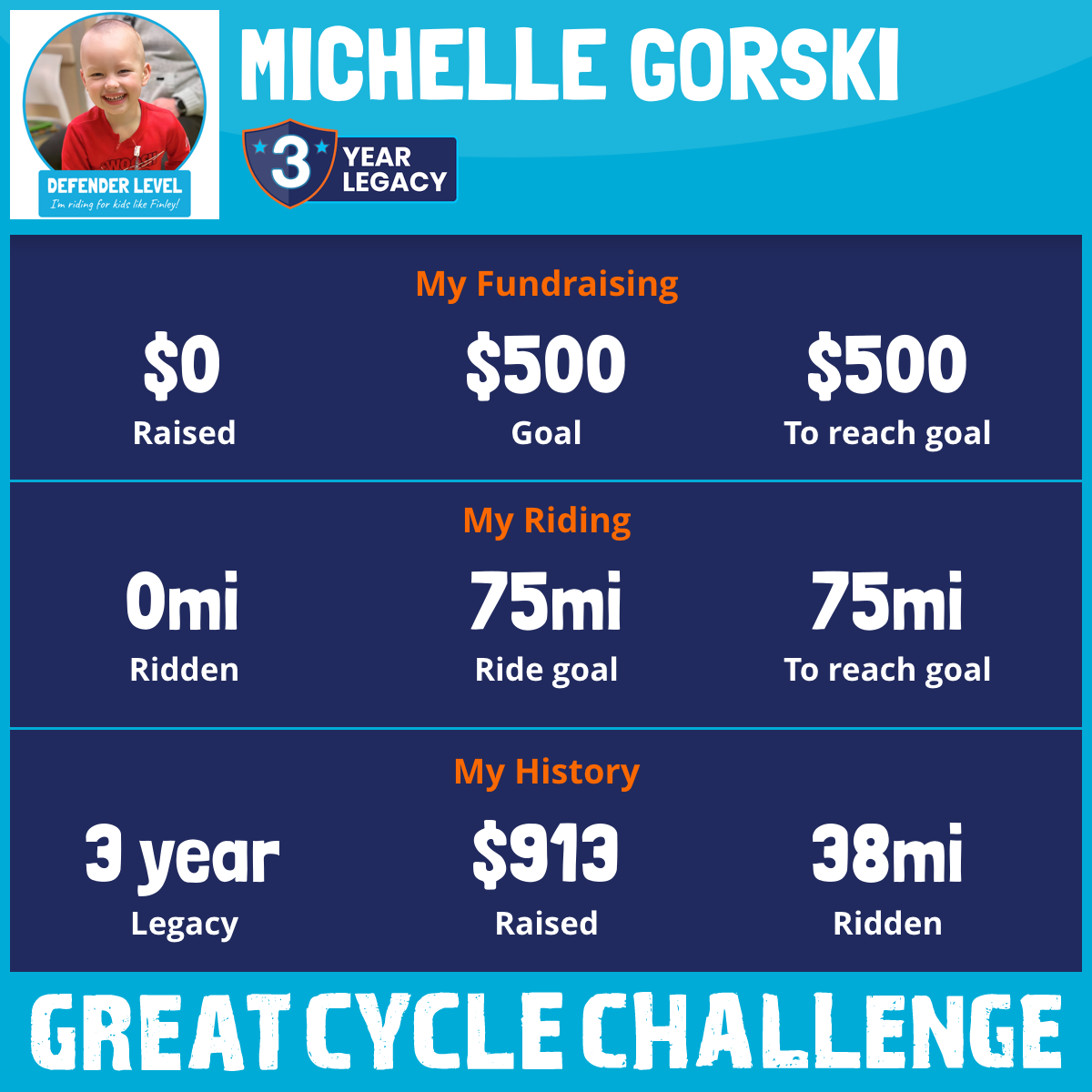 I am riding 75 mi for my dad, Anyone and everyone impacted by Cancer. Please sponsor me and support my challenge to fight kids' cancer and save little lives.