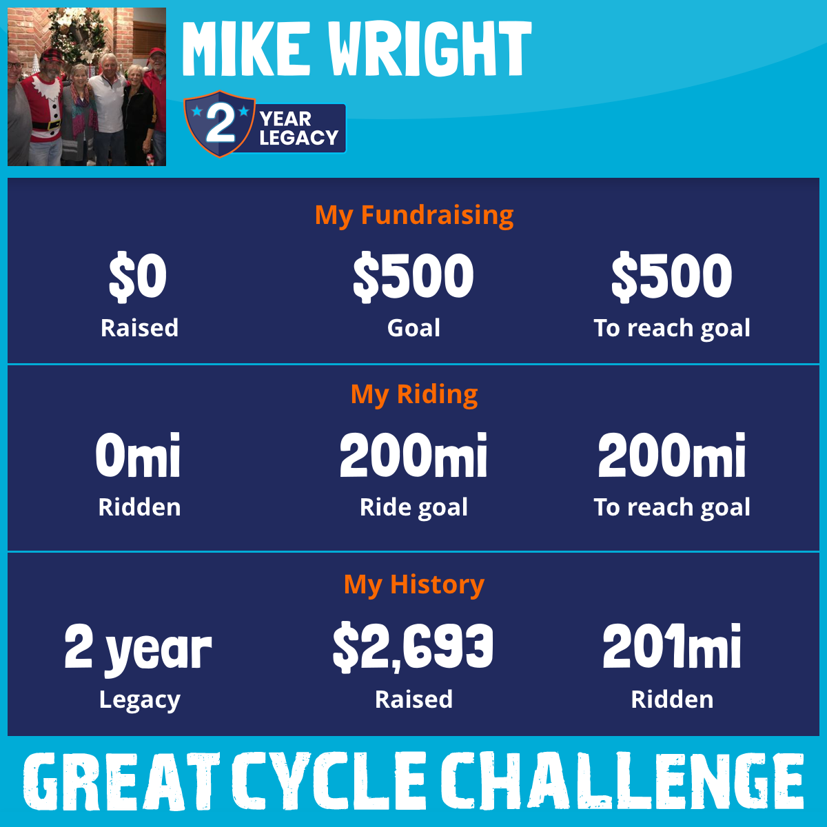 I am riding 200 mi for Mike Wright. Please sponsor me and support my challenge to fight kids' cancer and save little lives.