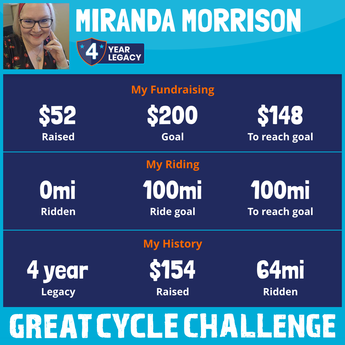 I am riding 100 mi for Mia. Please sponsor me and support my challenge to fight kids' cancer and save little lives.
