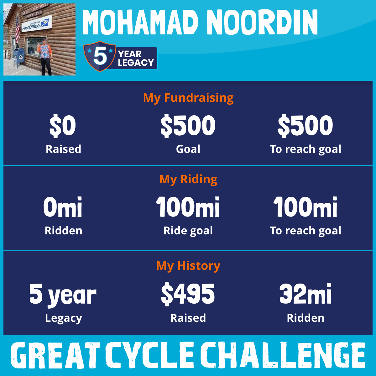 32 mi Ridden$495 Raised2021