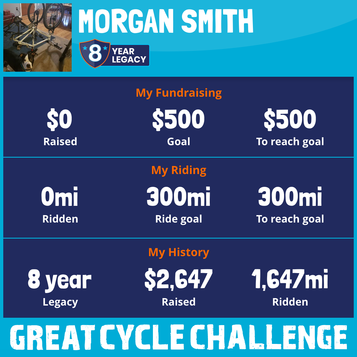 Year 8! It's been an amazing experience to use my favorite pass time to raise money for kids that can't get out there and ride themselves, thank you to anyone taking the time to check out my page, and I highly encourage everyone to get out and ride, if they can, it really is one of the best things ever.