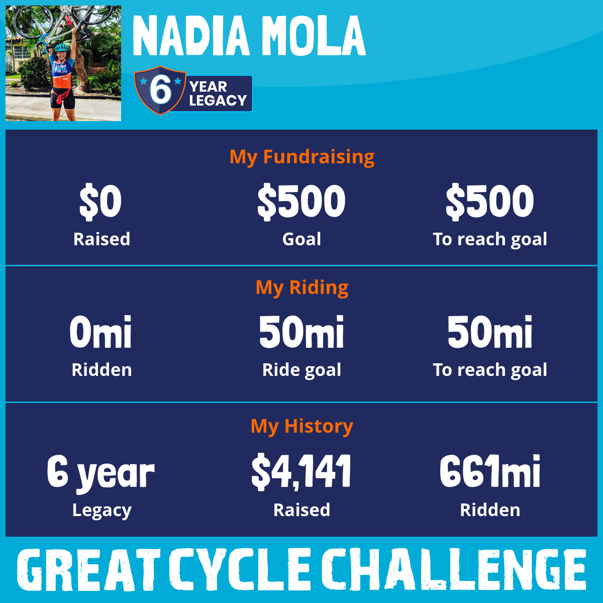 I am riding 50 mi for Mama Bear, mis abuelas, Tio Jorge, and many more!. Please sponsor me and support my challenge to fight kids' cancer and save little lives.