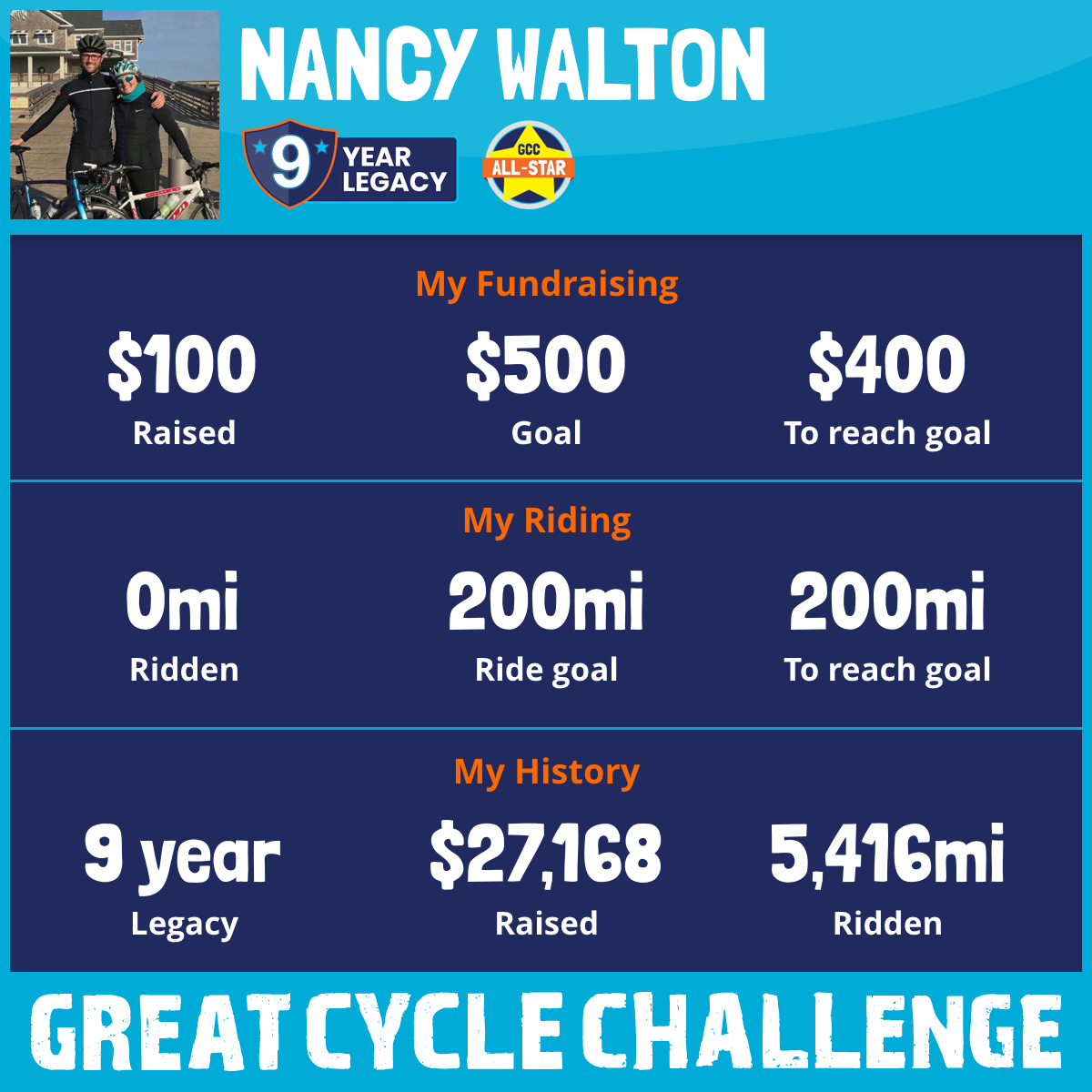 This September, I am taking part in the Great Cycle Challenge to fight kids' cancer! I have participated for the past 8 years and with your generous support I have cumulatively raised over $27,000.00! YOU are making a difference and I thank you!