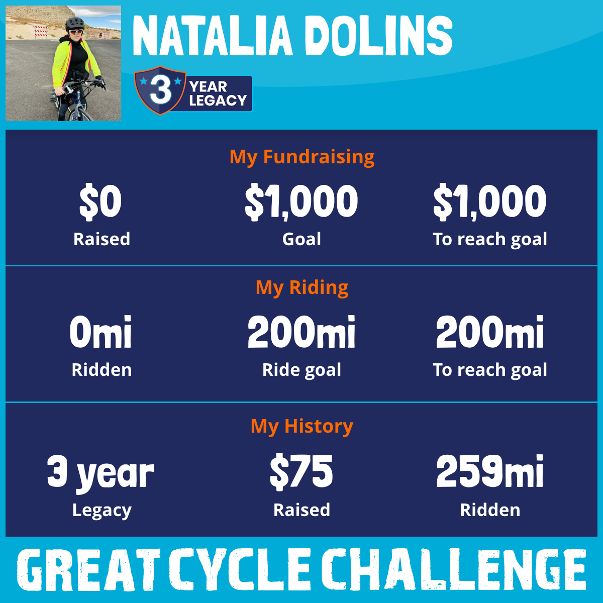 259 mi Ridden$75 Raised2018