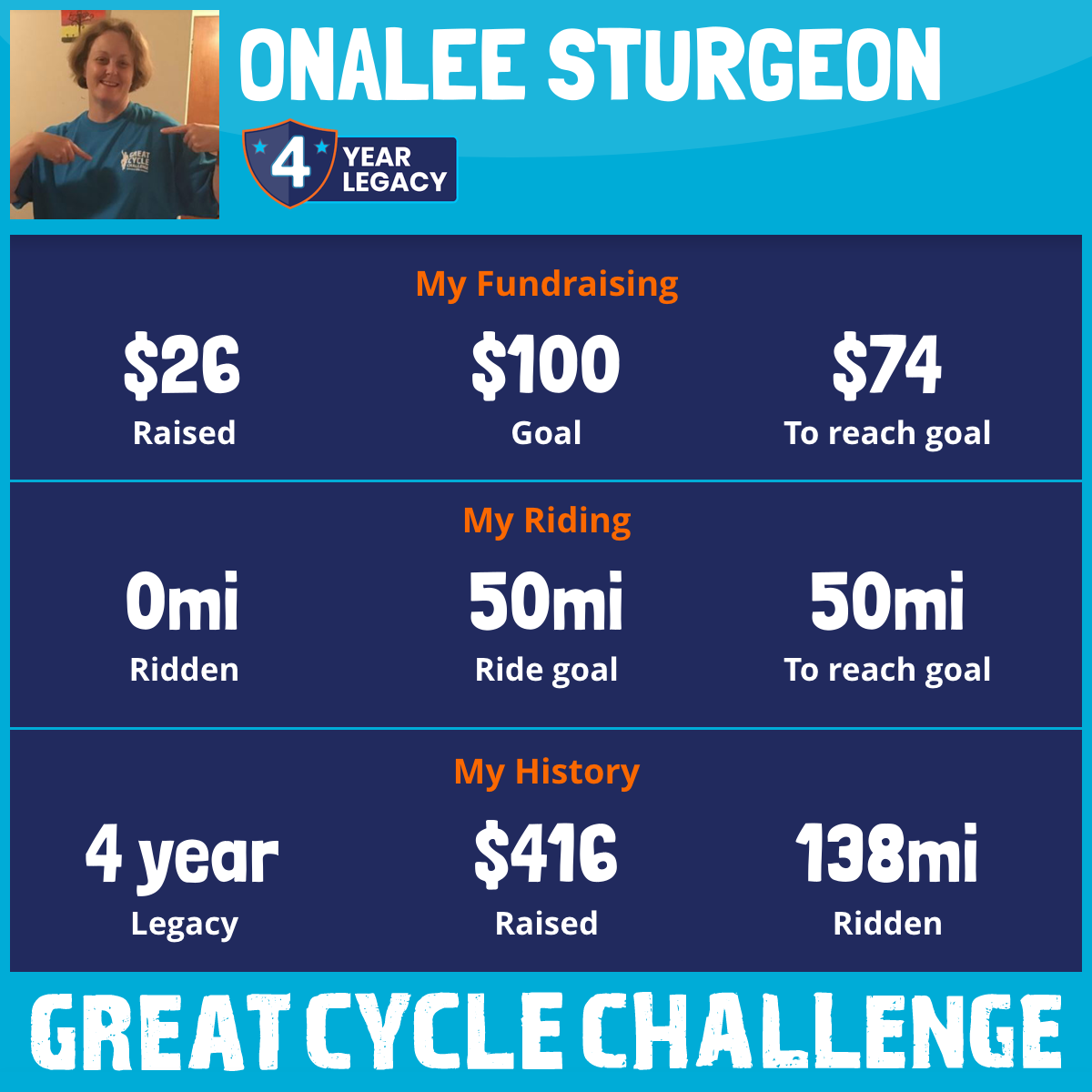 I am riding 50 mi for all of the children fighting for their lives. Please sponsor me and support my challenge to fight kids' cancer and save little lives.