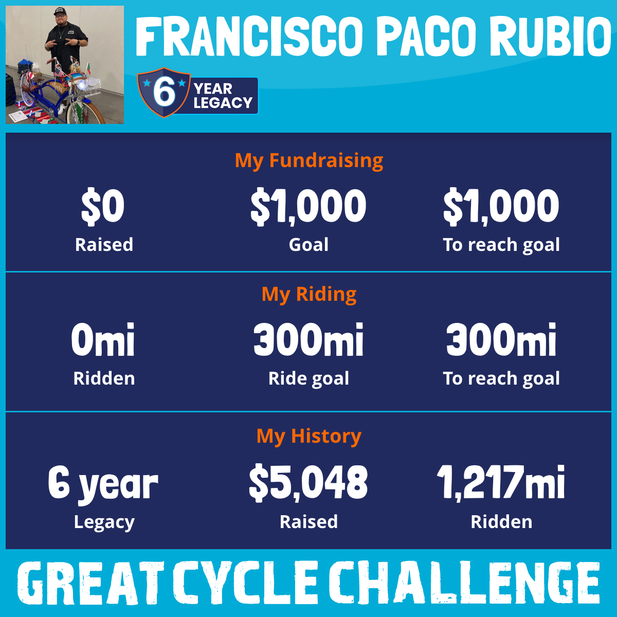 201 mi Ridden$1,017 Raised2023