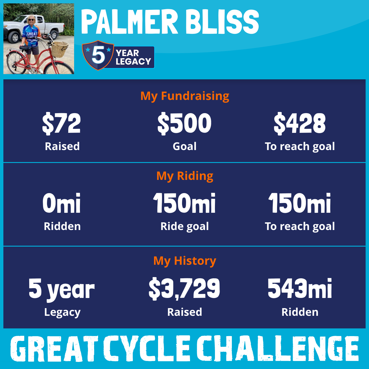 160 mi Ridden$1,003 Raised2021