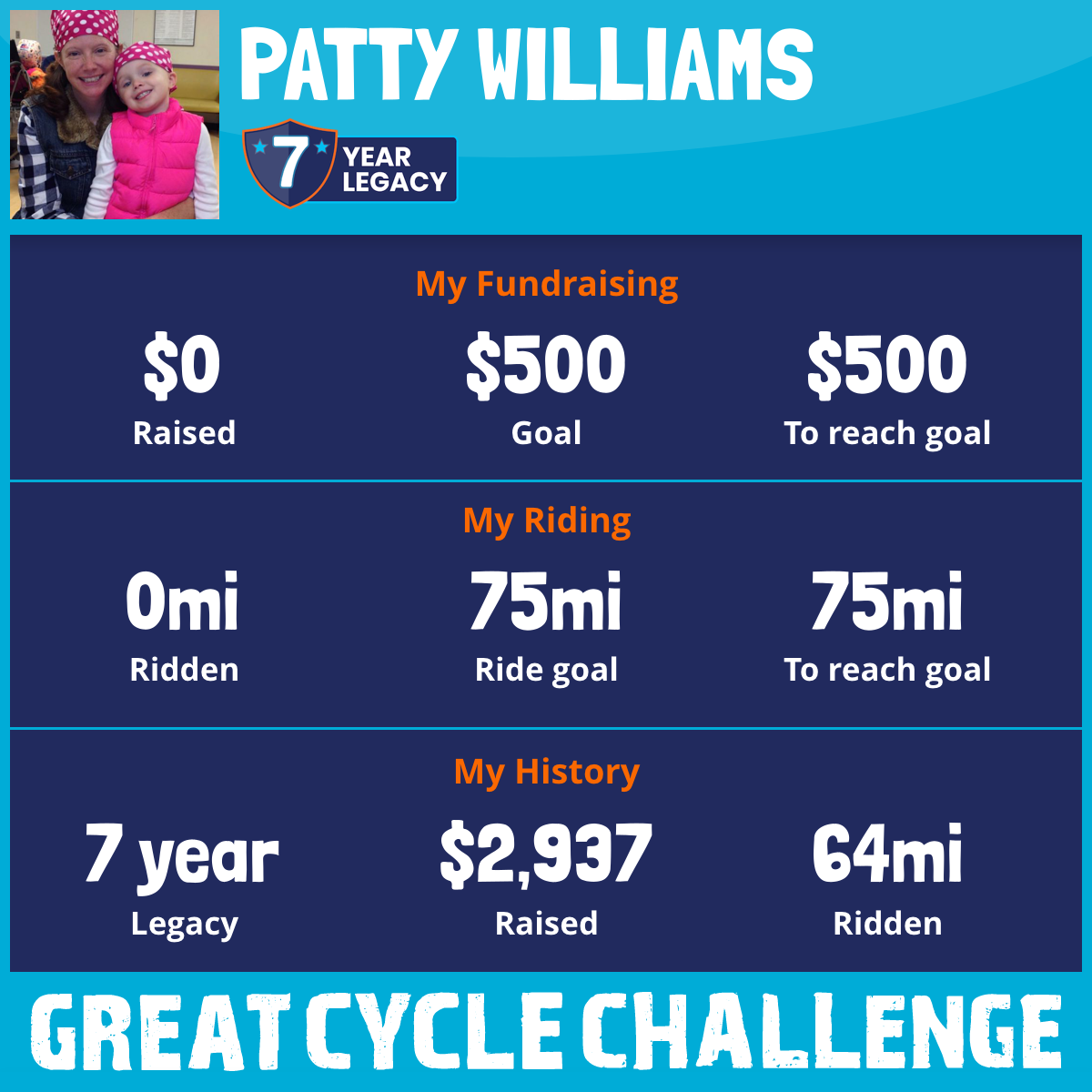 I am riding 75 mi in memory of Ainsley Kargela. Please sponsor me and support my challenge to fight kids' cancer and save little lives.
