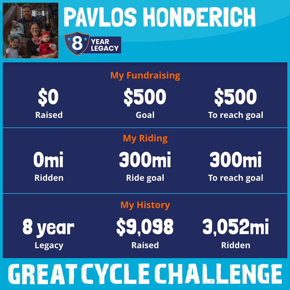This year marks the 8th year that I've participated in the event going back to 2016. Over the past 7 events I’ve raised $9,100 and ridden over 3,000 miles.