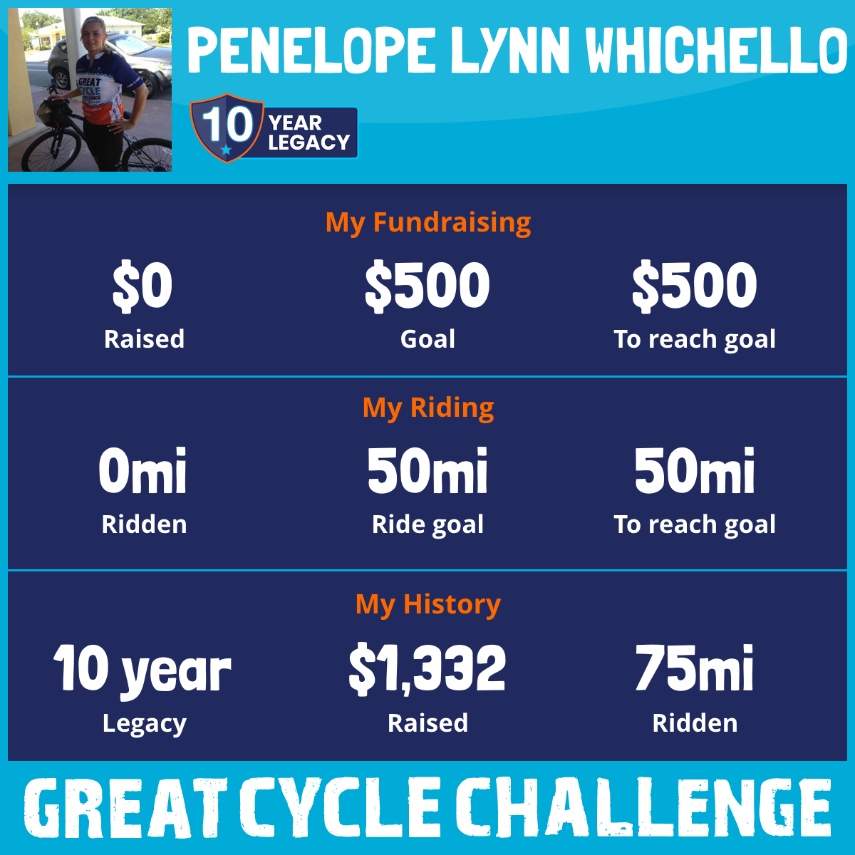 I've raised $0 My goal is $500 Donate Now