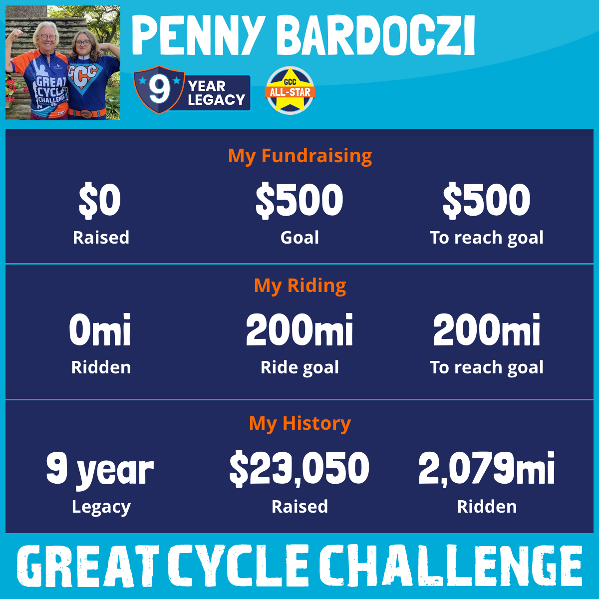 This September I will be taking part in the Great Cycle Challenge to fight kids' cancer! This is my 9th year.