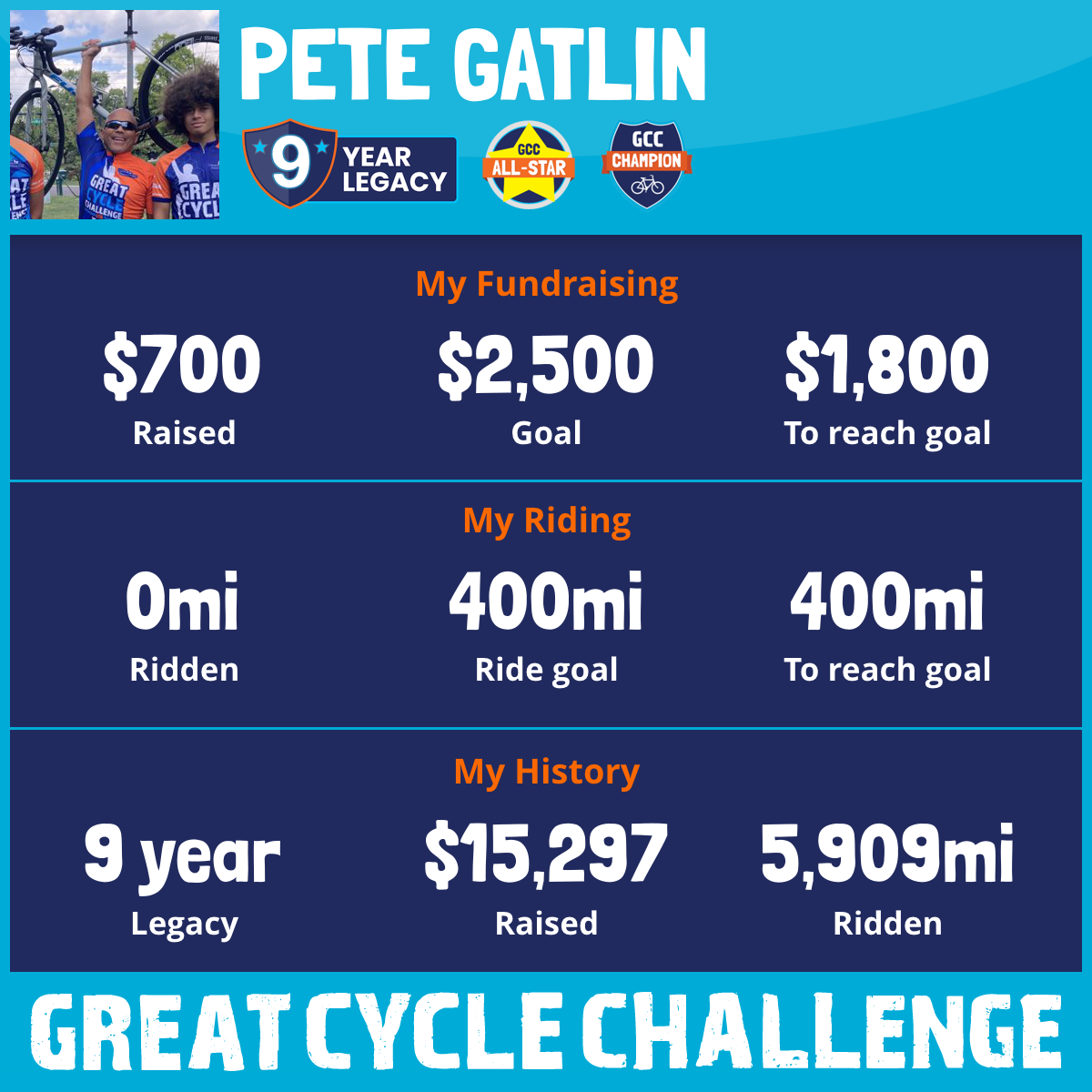 400 mi Ridden$2,163 Raised2025