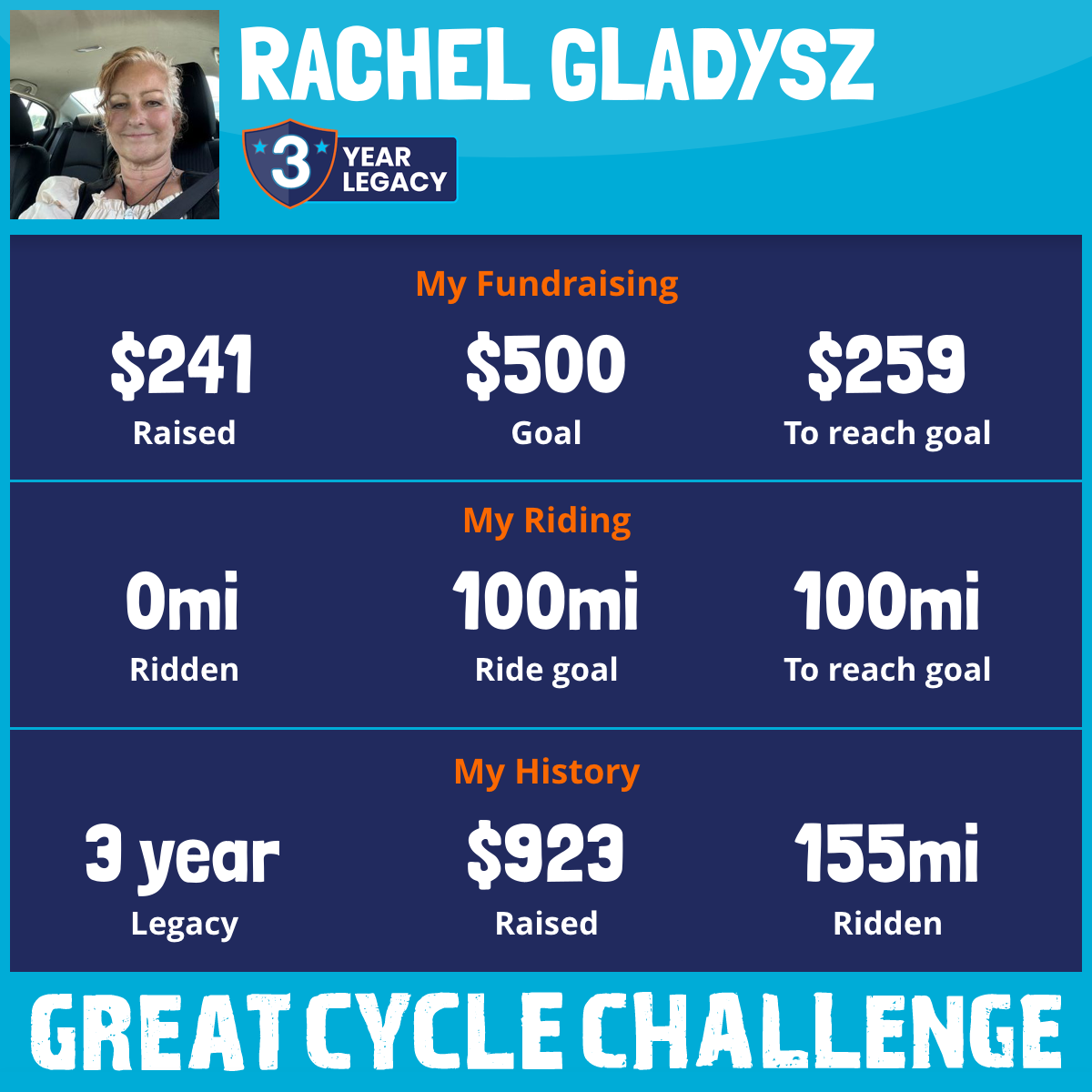 50 mi Ridden$288 Raised2023