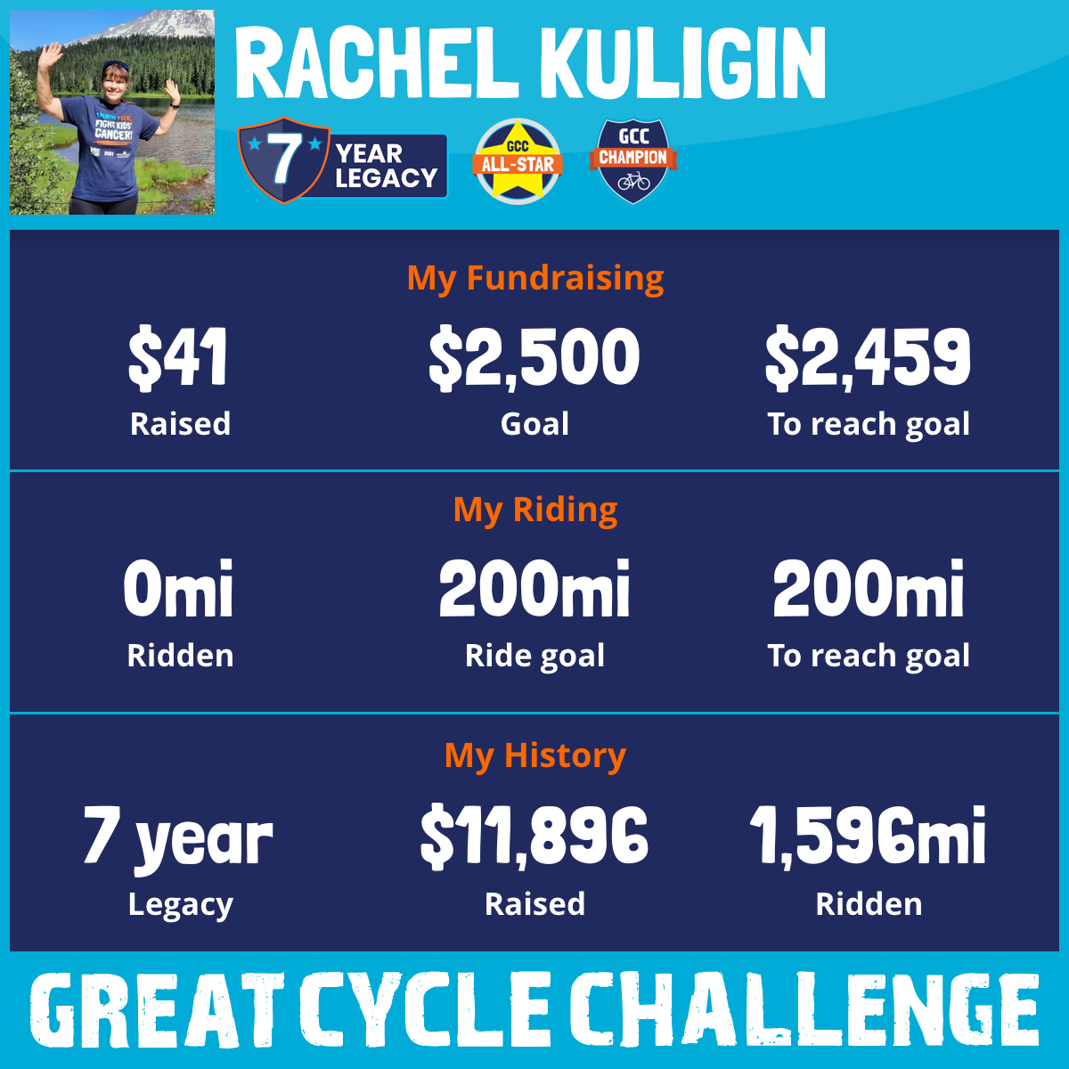 22 Sep 2025Thank you everyone for your prayers and financial support! I have completed my 200 mile commitment and YOU have reached my fundraising goals! I am so appreciative of all the support and interest this year. I hope to return again next year and ride for Children's Cancer Research Fund. May you all be blessed!