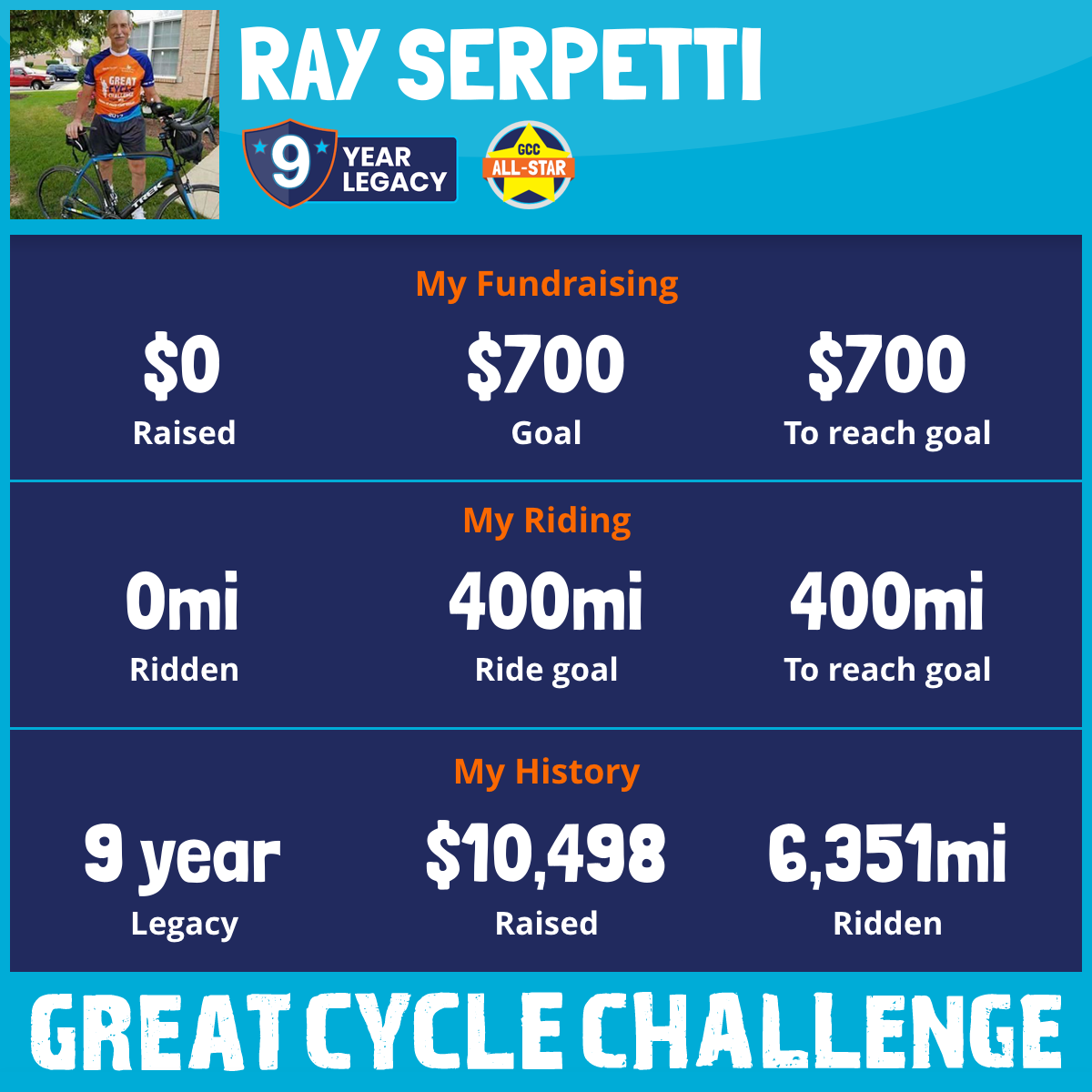 822 mi Ridden$1,375 Raised2023