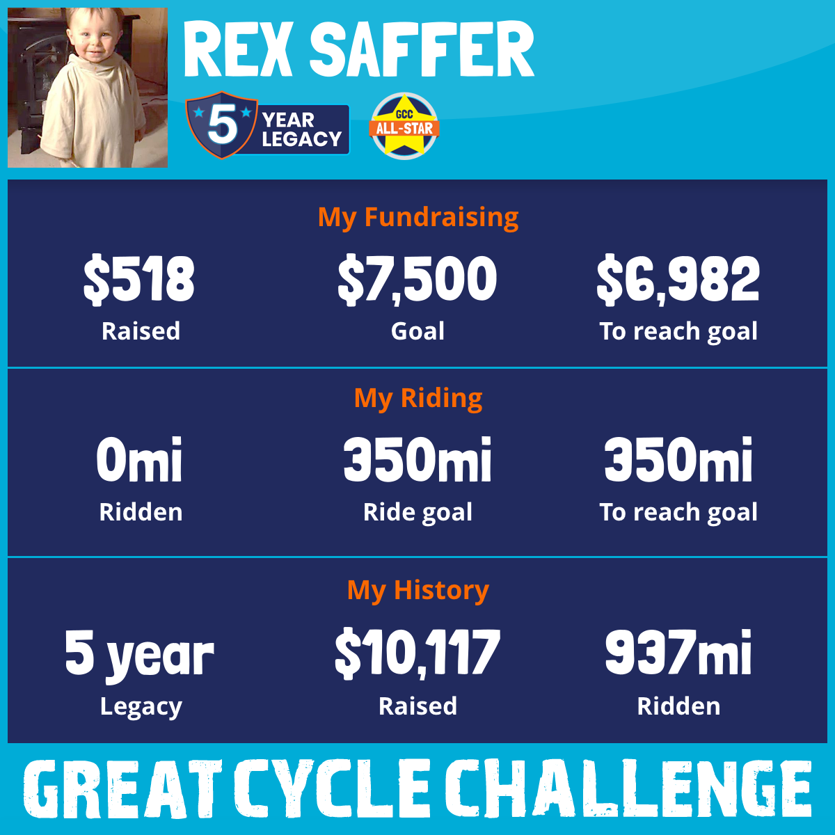 I rode 271 miles and raised $178 in 2021, 304 miles and $2,034 in 2022, 361 miles and $6,869 in 2023. I was unable to ride last year due to an arthritic hip, which has since improved. This year I will try to coax 350 miles out of my aging, delapidated body. The rest depends on you! I have set a goal of $10,00 and hope you will help me to reach or even exceed it.