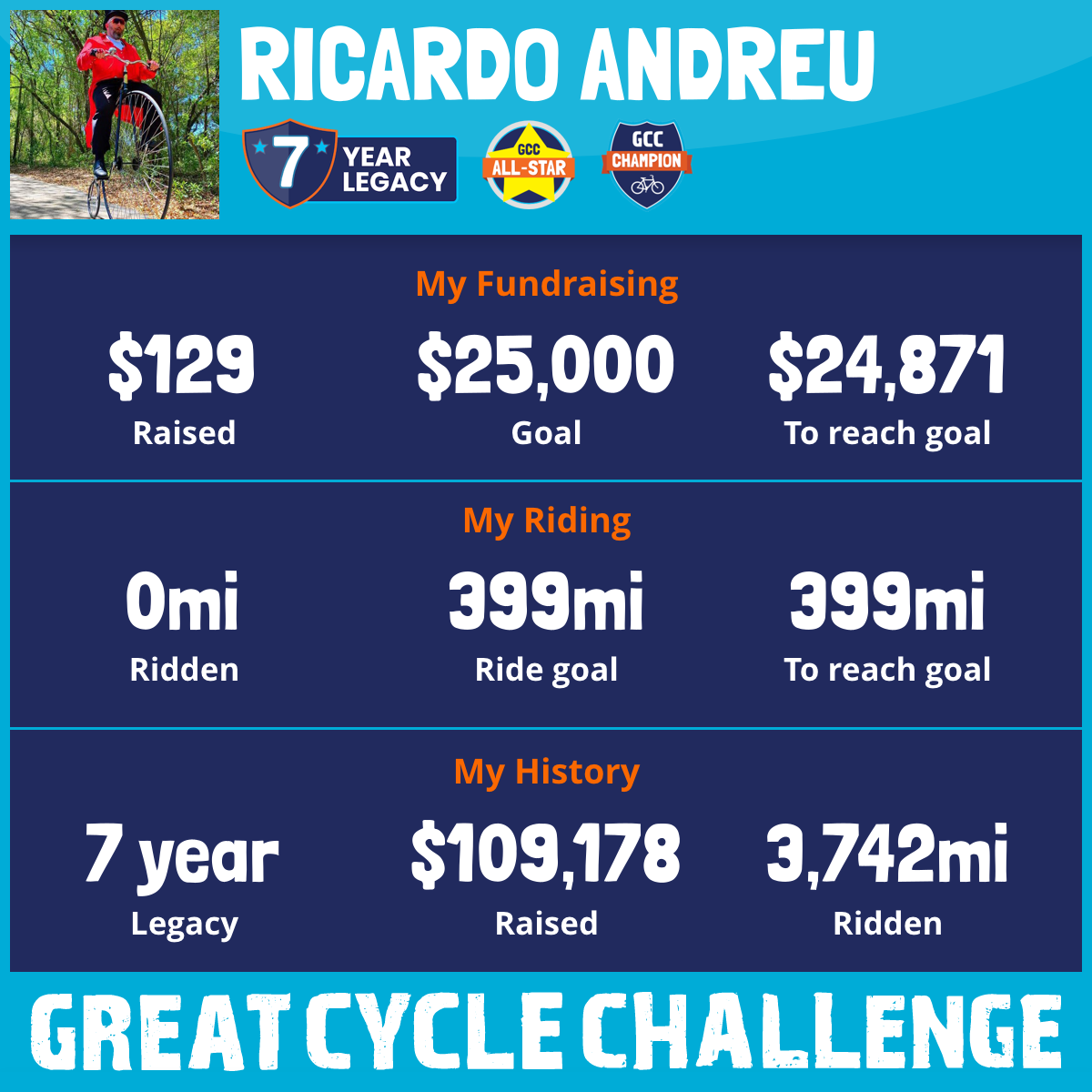 400 mi Ridden$18,384 Raised2023