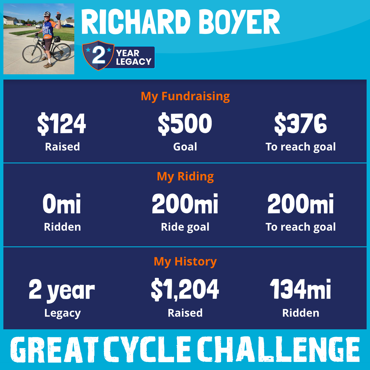 134 mi Ridden$1,080 Raised2023