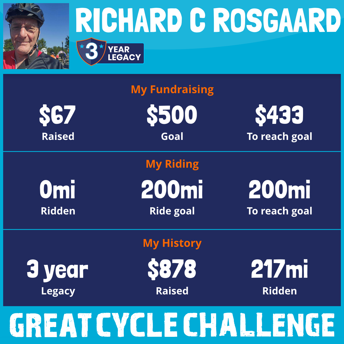 I am riding 200 mi in memory of my loved one, Too many to want to list. Cancer sucks.. Please sponsor me and support my challenge to fight kids' cancer and save little lives.