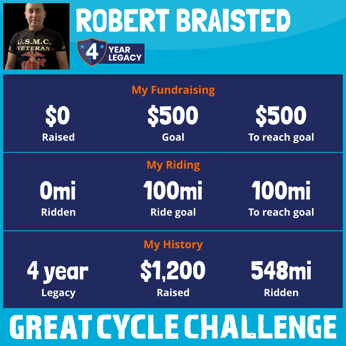 Note! Now that I have made my goal of raising $500. I am adding 1 additional mile to my riding goal (originally 200 miles) for every $5 over my initial goal of $500. (up to an additional 100 miles)