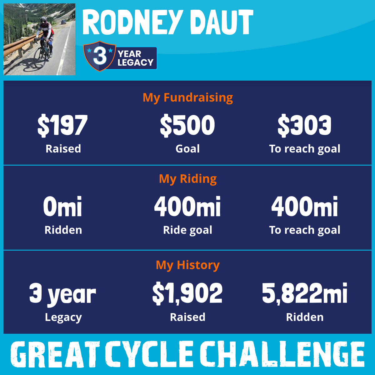 4,185 mi Ridden$500 Raised2015