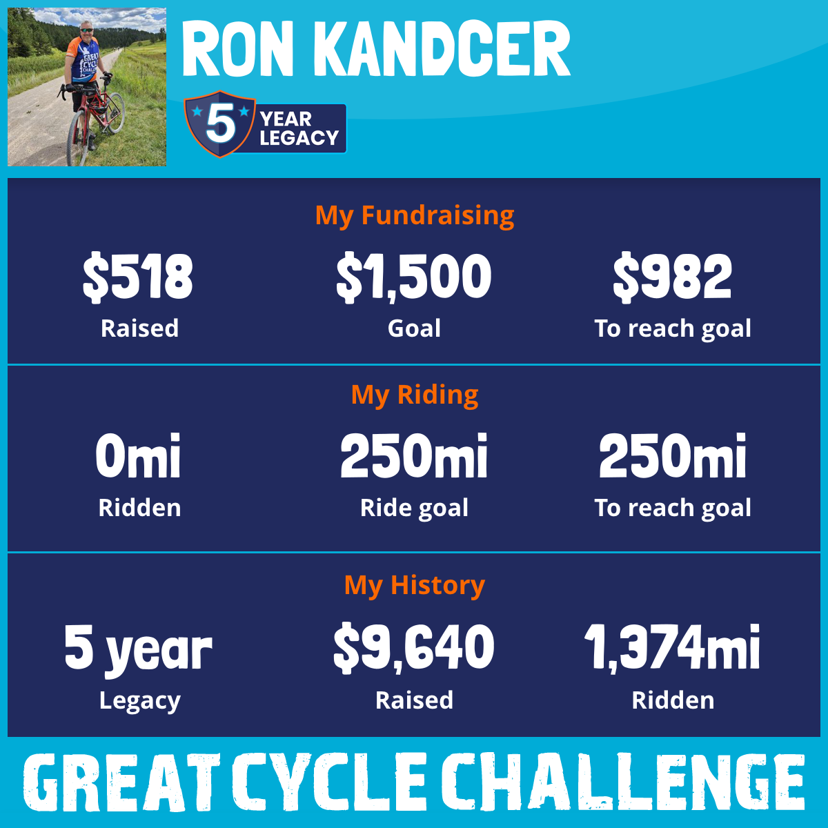 👉 https://greatcyclechallenge.com/Riders/Ronkandcer