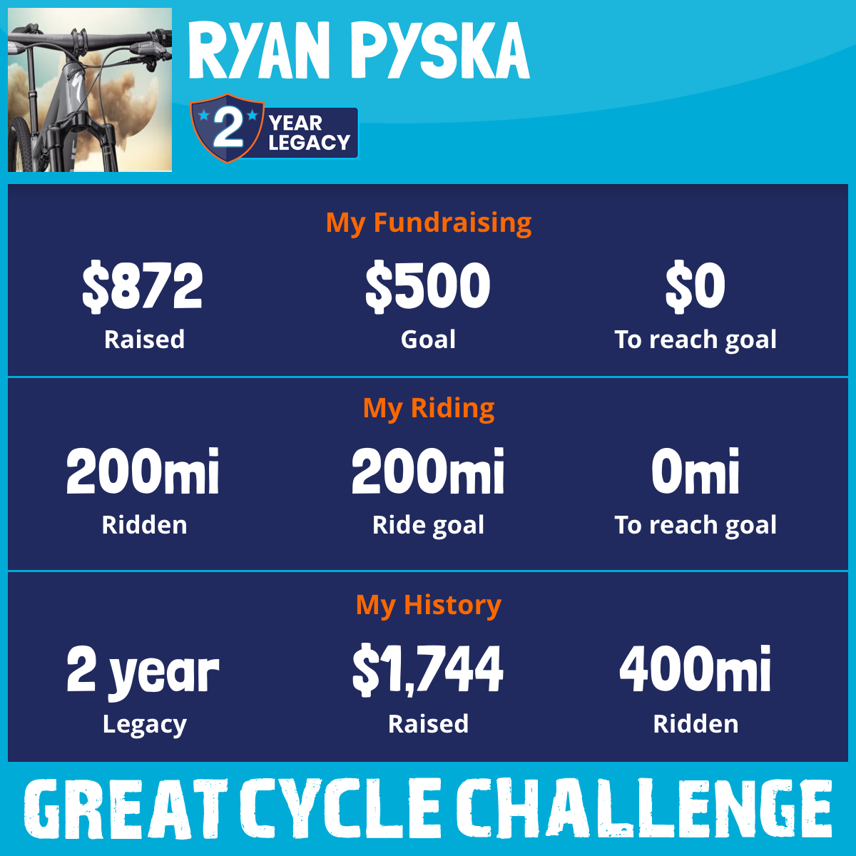 200 mi Ridden$872 Raised2026