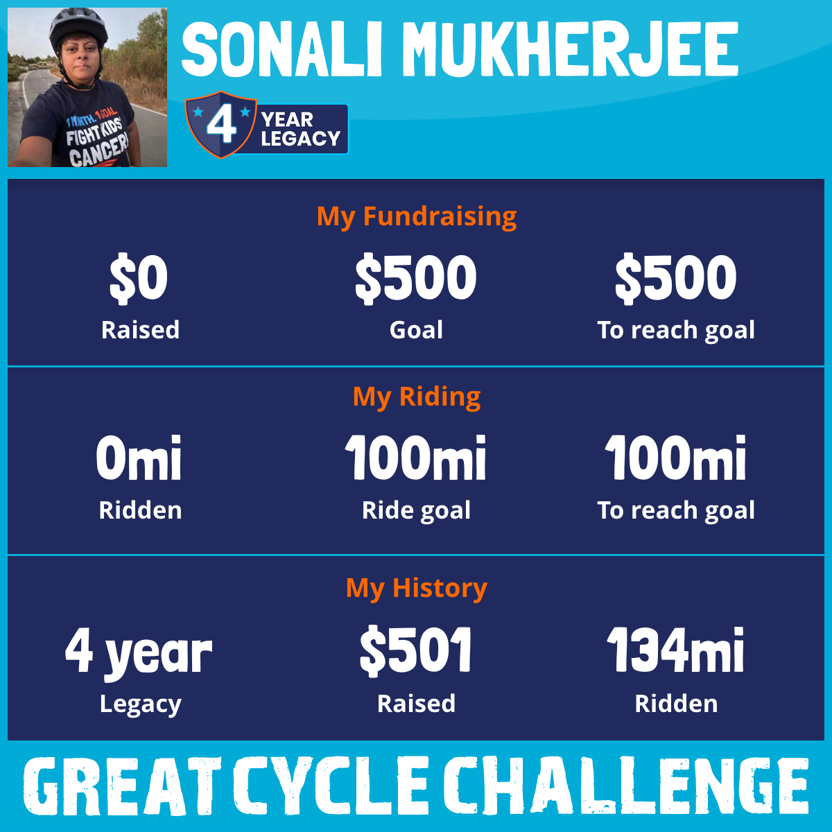 I am riding 100 mi to fight kids' cancer and save little lives. Please sponsor me to support my challenge!