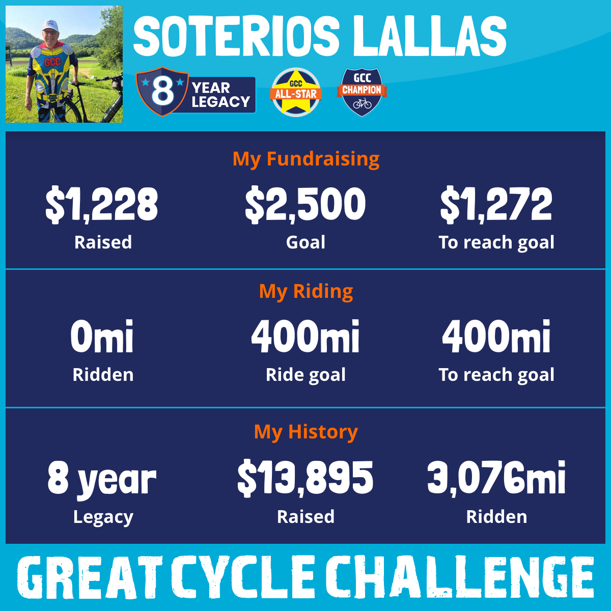 470 mi Ridden$2,502 Raised2021