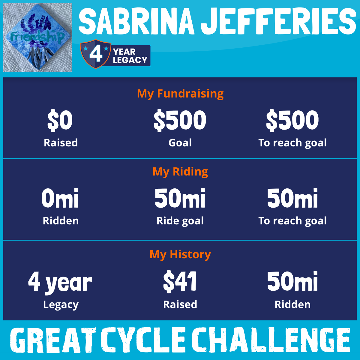 I am riding 50 mi in memory of Jane. Please sponsor me and support my challenge to fight kids' cancer and save little lives.