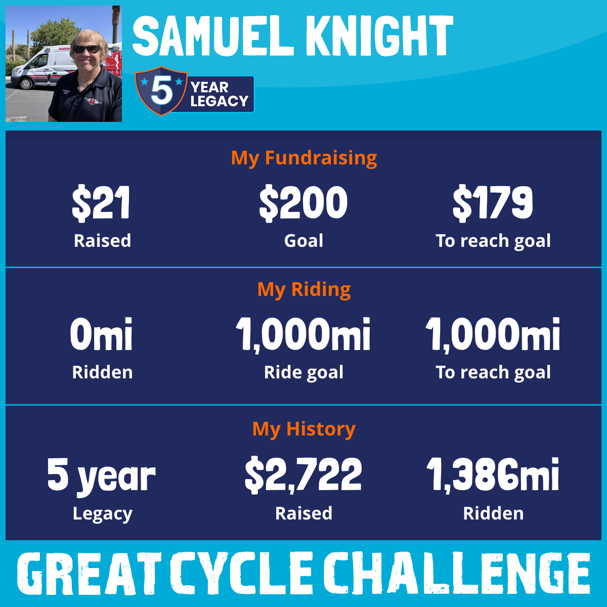 I am part of the Stony Brook Emergency cycle crew team (Long Island, NY). We originate and ride from points all over America. My mileage and routes will be tracked and verified by Strava App.