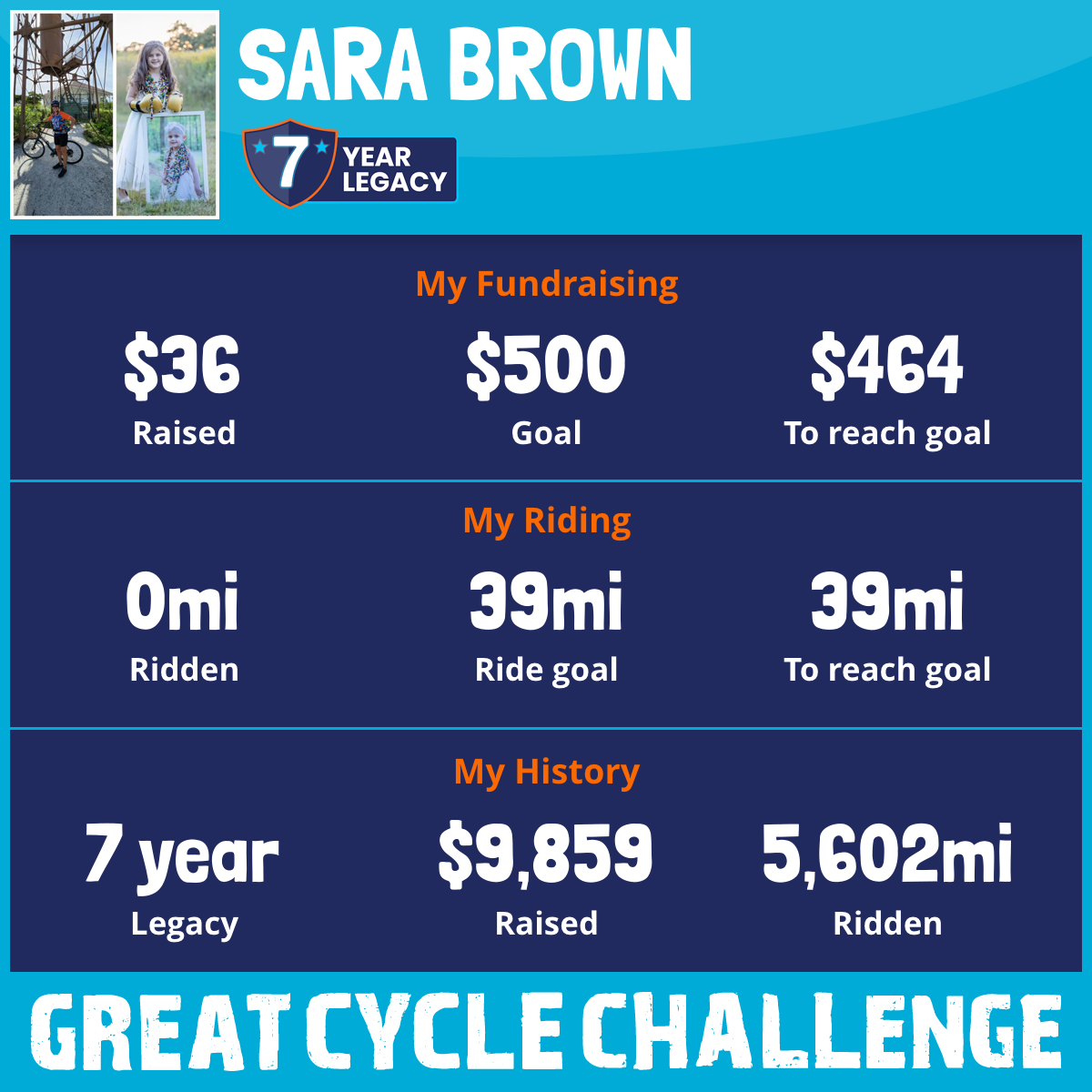 This September is my seventh year riding to support this great cause. Addi is doing great, just finished 3rd grade and her latest scans show NO EVIDENCE OF DISEASE!!! Right now, cancer is the biggest killer of children from disease in the United States. Over 15,700 children are diagnosed every year, and sadly, 38 children die of cancer every week. I will continue to ride as kids should be living life, not fighting for it.