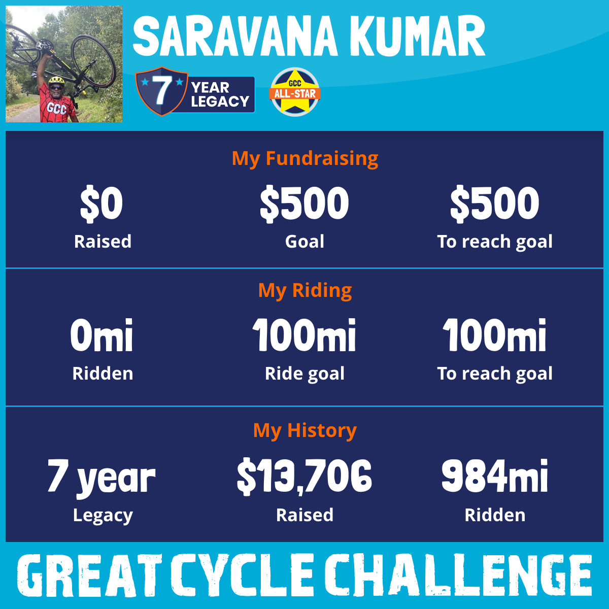 327 mi Ridden$3,065 Raised2021