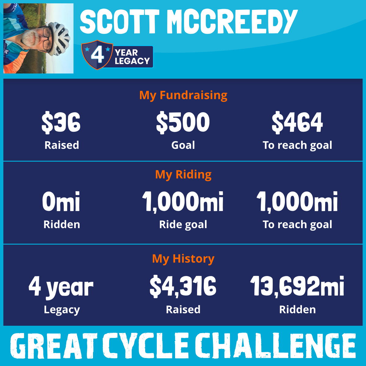 5,796 mi Ridden$1,283 Raised2023