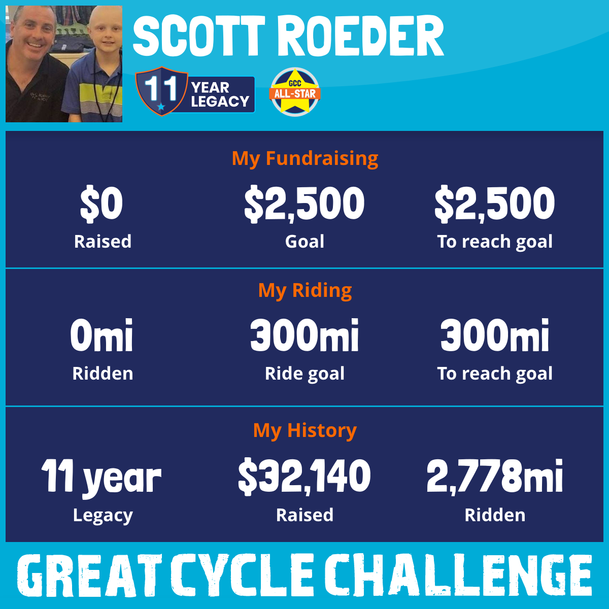 I am riding 300 mi in memory of Trevor Scheerer. Please sponsor me and support my challenge to fight kids' cancer and save little lives.